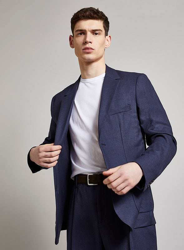 A simple way to relax the formality of tailoring is to swap a shirt for a T-shirt. This outfit is made up of Sunspel’s travel wool unstructured blazer and pleated trousers in matching cloth. The deconstructed nature of Sunspel’s jackets means that even a suit – one of the most traditional of garments – has the brand’s signature relaxed spirit. Because of this, wearing a T-shirt with it looks perfectly natural. There are other, more rigid jackets and suits with which a T-shirt simply looks too casual, but Sunspel’s work really well with a T-shirt. And while we know that a T-shirt is only box-fresh, as it were, when first purchased, Sunspel’s classic does look and feel incredibly chic when brand new, so take full advantage of this by wearing it first with tailoring. The good news is that the high-quality cotton ensures that Sunspel’s T-shirt will keep its shape and colour over time, too.