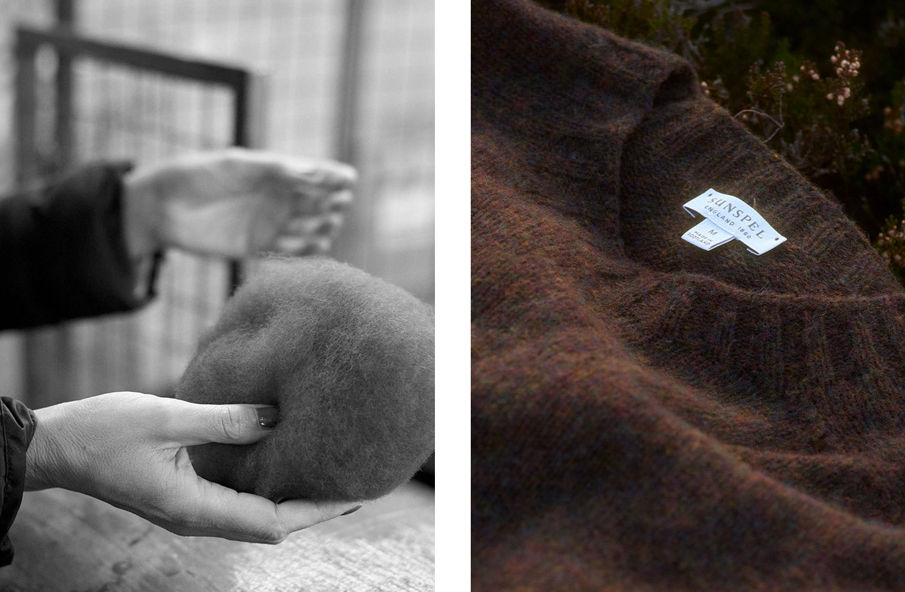 What makes a Shetland jumper unique is its textured, woolly look. This comes from the ring-spun yarn which blends many colours, and the brushed finish. Traditionally performed with teasels picked from the hillside, brushing the garment pulls some of the fibres out, making the wool softer on the skin and resulting in the distinctive finish that makes the Shetland famous.