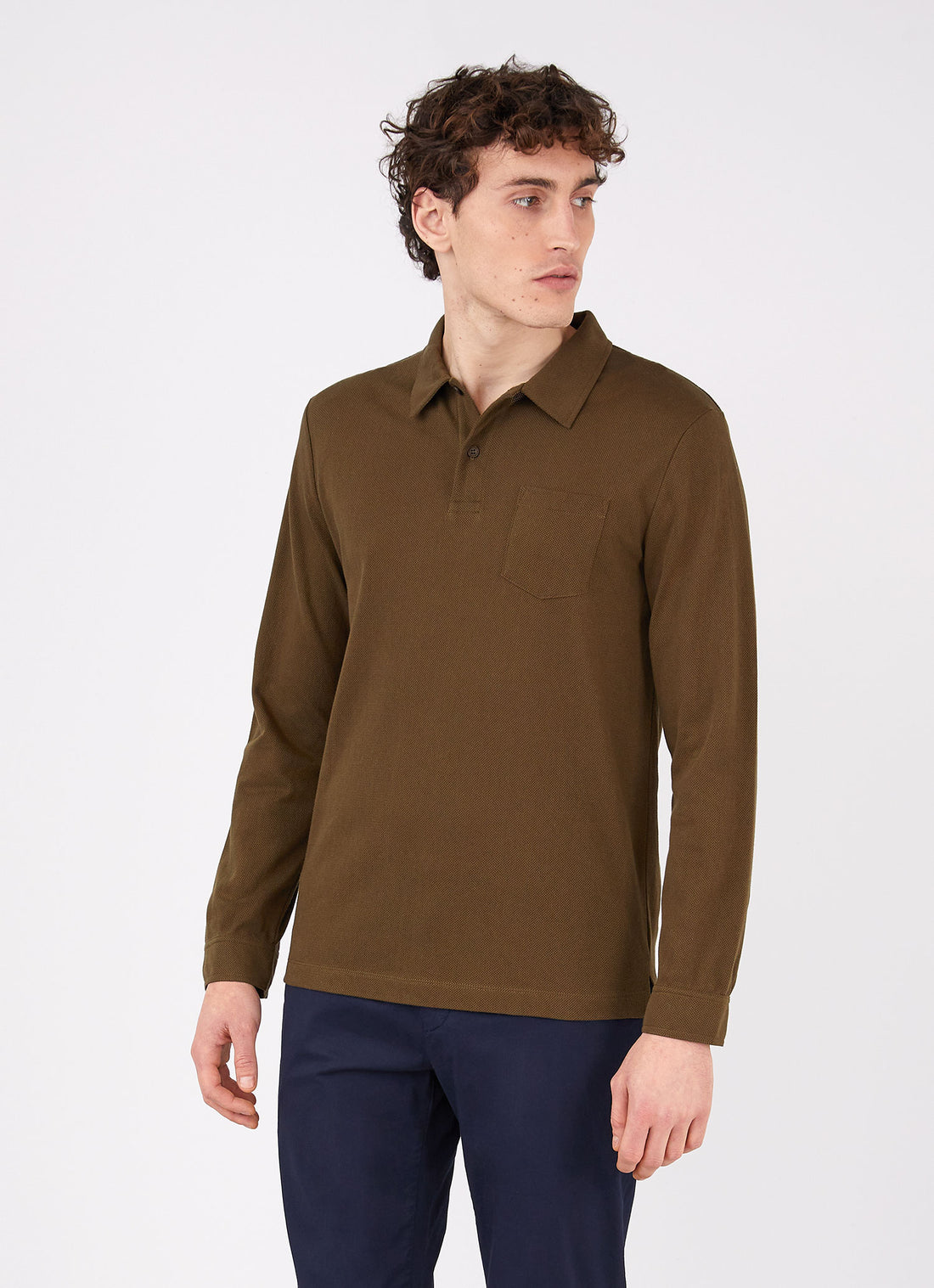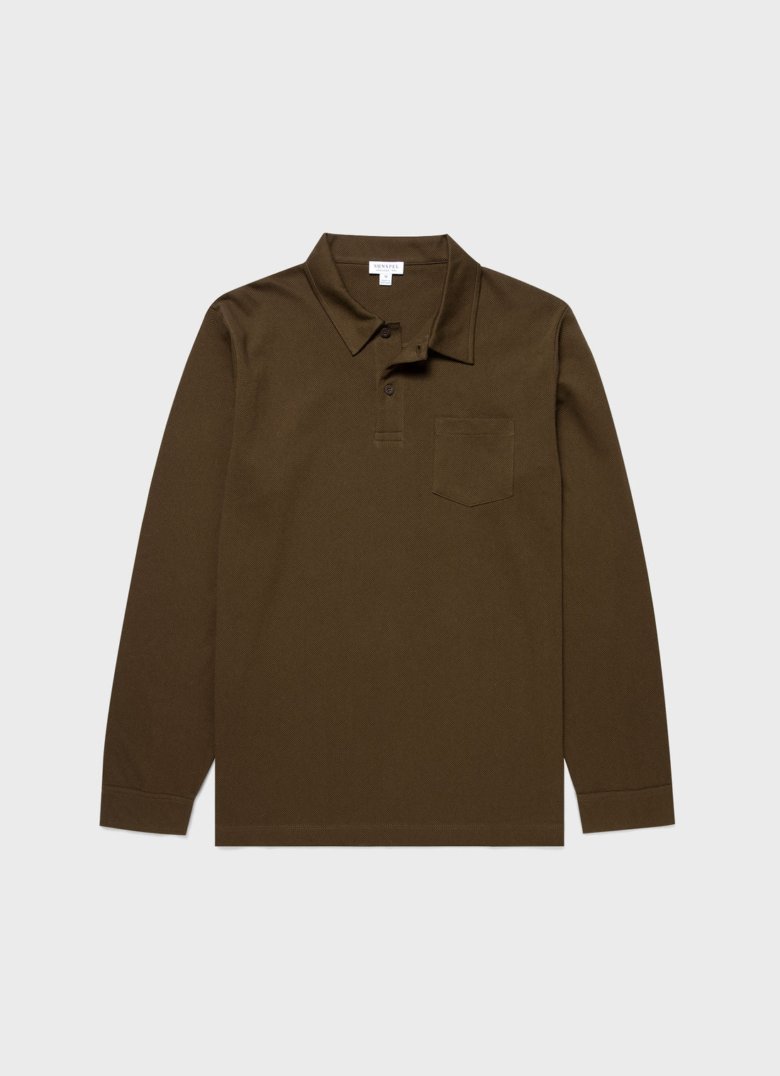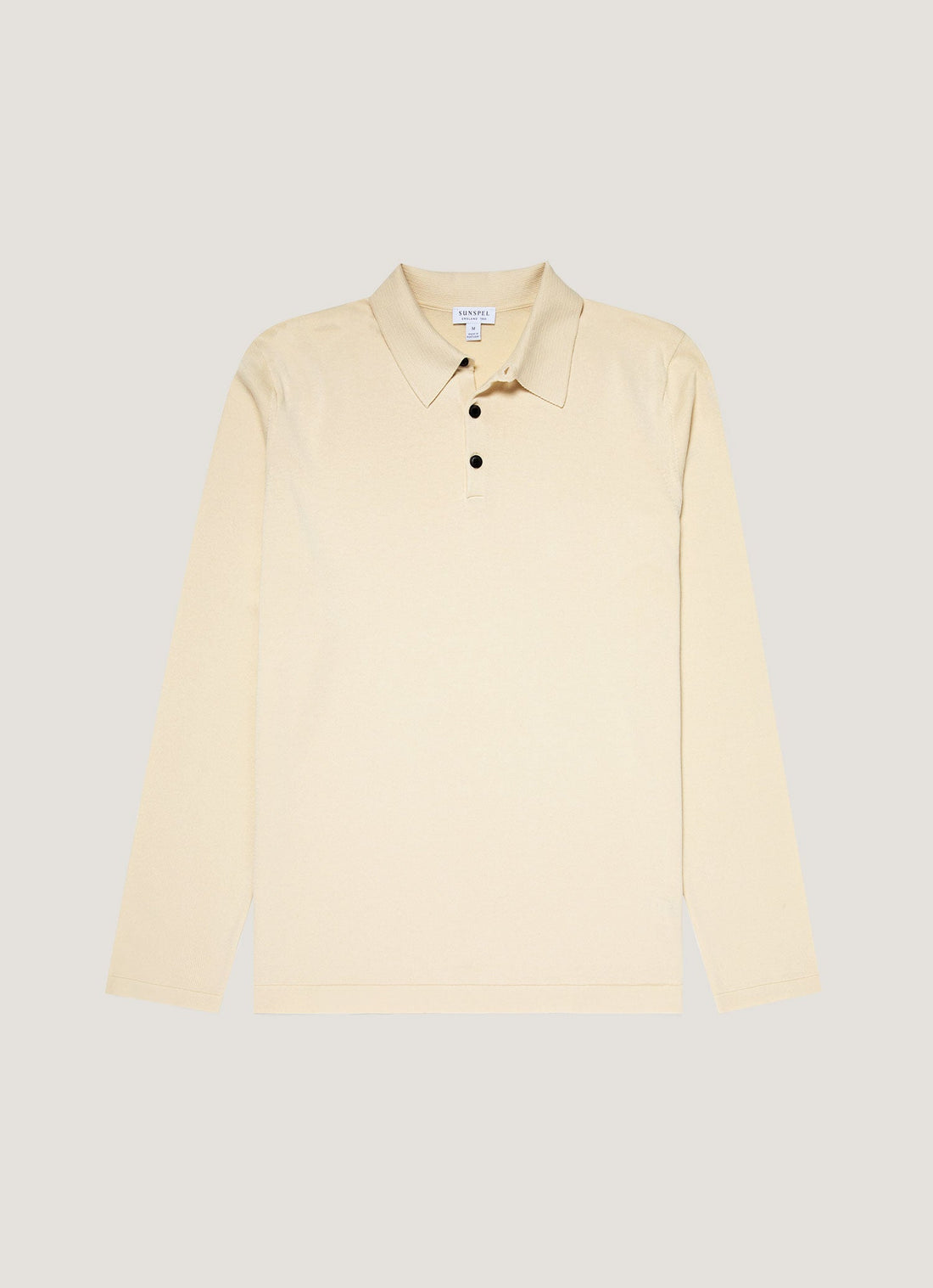 Long Sleeve Sea Island Cotton Knit Polo Shirt