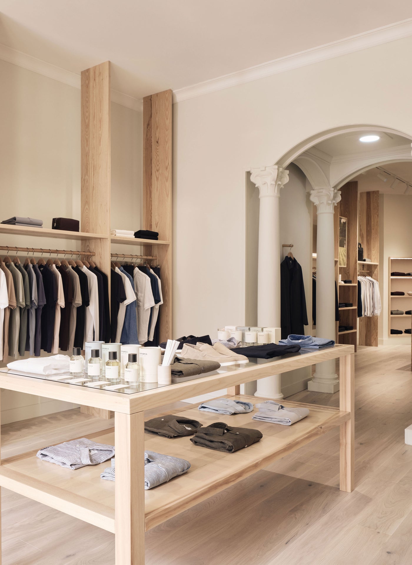 Sunspel Edinburgh is located on George Street, the heart of the city’s historic New Town and one of the most distinguished shopping streets. Established in the late 18th century, George Street was designed as a symbol of style and innovation. By the 19th century, it had become home to Edinburgh’s leading banks, tailors, and private clubs.