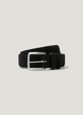 A luxuriously soft suede belt, lightly padded with leather backing. The brass buckle has a chrome coloured finish. A classic belt made for Sunspel in Rutland, Leicestershire, England.