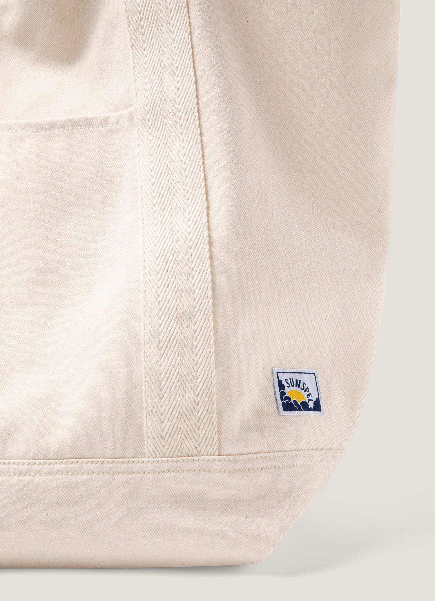 A large everyday tote crafted from a super soft cotton twill. Has front pocket detailing, a herringbone webbing strap, an internal zip pocket and features the Sunspel 'Sun and Clouds' logo that dates back to the 1930s.