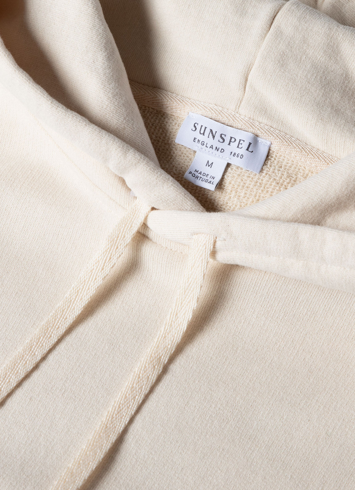 This Loopback Hoodie comes in its natural undyed shade and features a classic fit, double hood (to ensure no exposed lining), ribbed cuffs and front patch pocket. The 'loopback' fabric was originally developed for sports garments, wicking moisture from the body. Today we use it to trap warm air inside, providing an insulating layer.