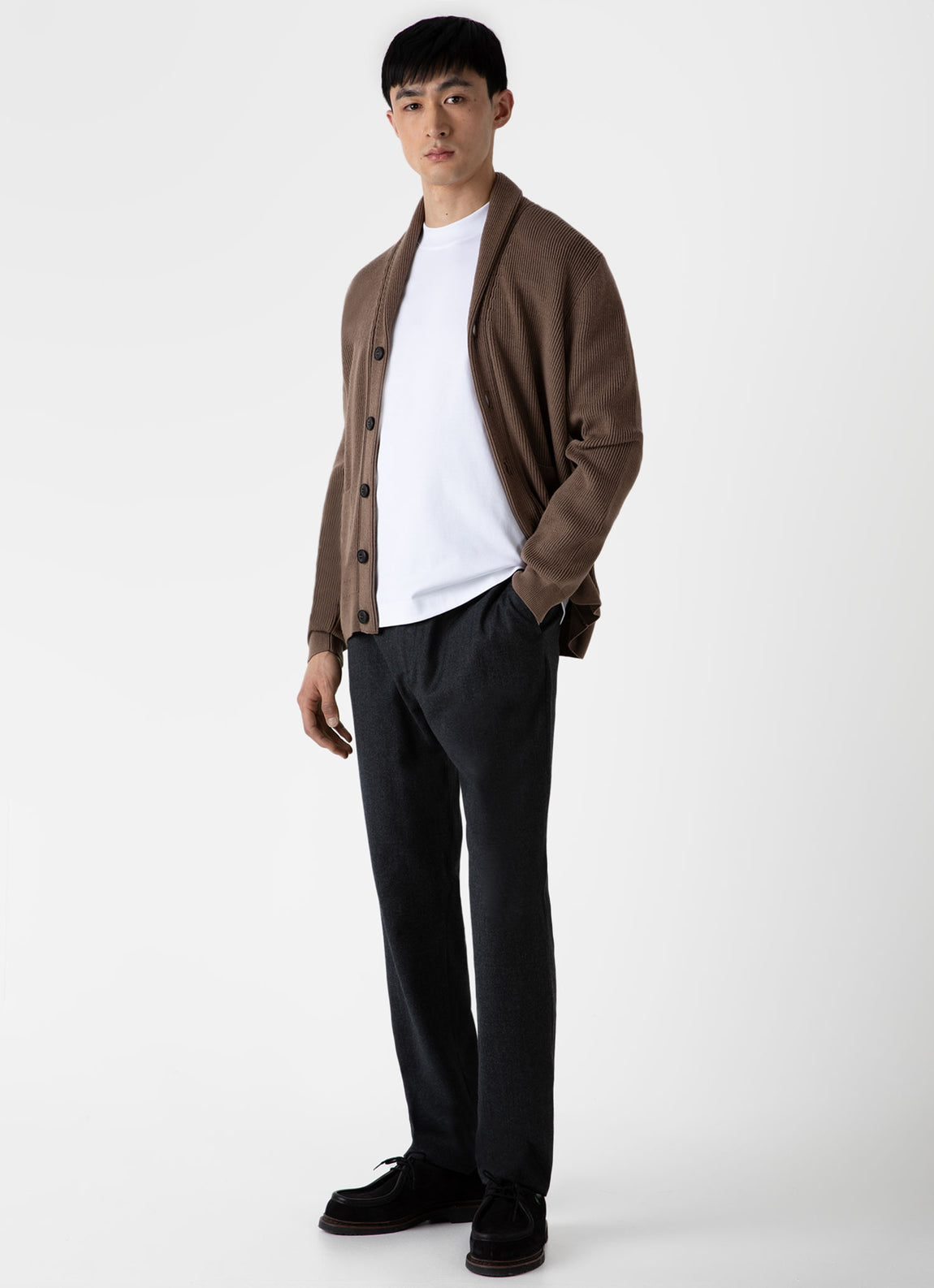 A heavyweight T-shirt made with the highest quality long staple cotton, carbon brushed for an extra soft handle. With a contemporary wide-trim crew neckline and a relaxed fit, it's the ultimate layering piece. Pair with our Corduroy Twin Pocket Jacket