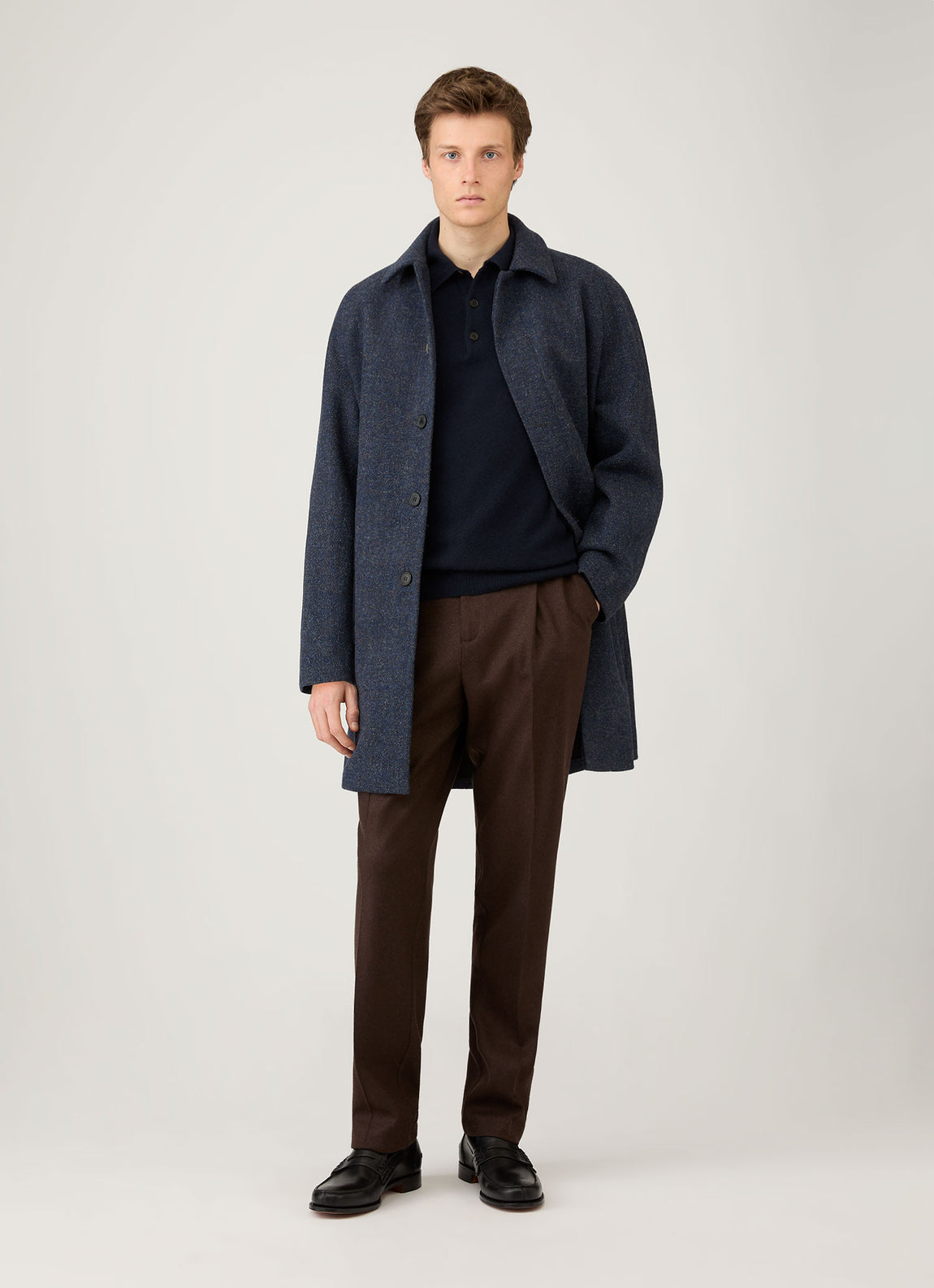 We use some of the world’s finest cashmere, with fibres measuring just 15.5 microns for exceptional softness and lightness against the skin. Our cashmere comes from a specialist producer in Inner Mongolia who owns their own pastures and oversees every stage of production, combining generations of expertise with modern Italian technology to ensure consistent quality. The yarn is then sent to Europe, where skilled craftspeople with over fifty years of experience knit each piece with precision. Fully traceable from farm to finished garment, our cashmere collection embodies refined craftsmanship, lasting quality, and the quiet luxury of timeless style.