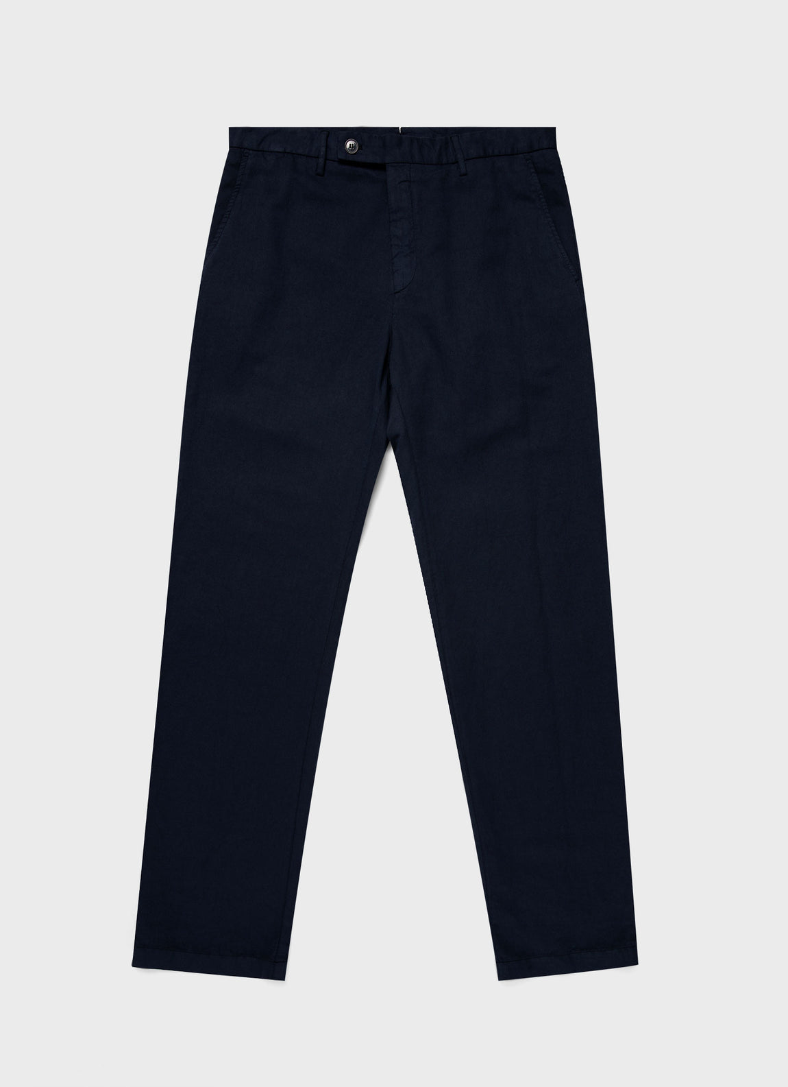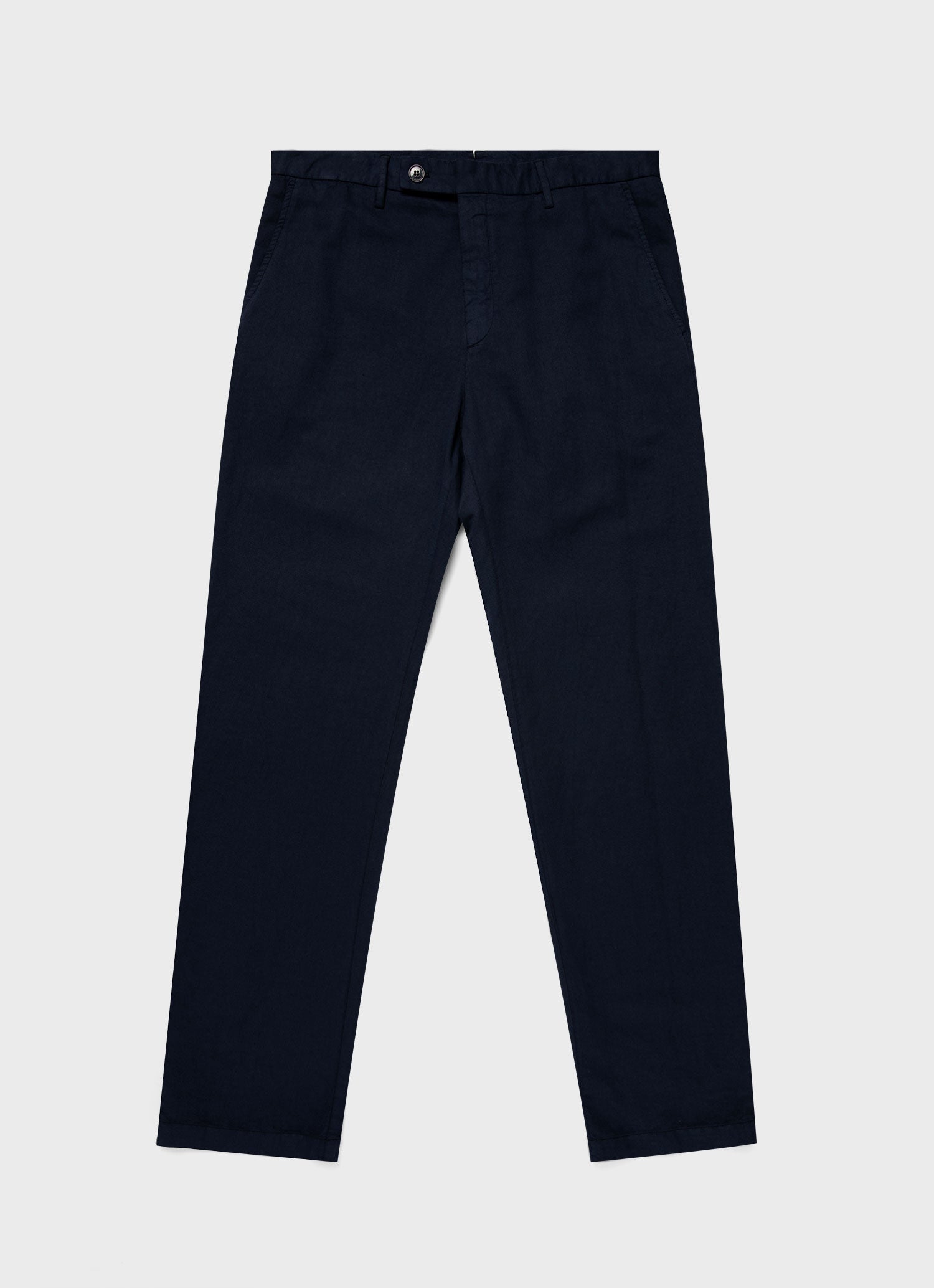 A summer trouser that pairs with the matching blazer for a relaxed summer suit. The French cotton-linen blend combines the softness of cotton with the casual look and breathability of linen, and is garment dyed for a super-soft finish. Has a regular fit, mid to low rise, with a straight leg and tailored waistband.