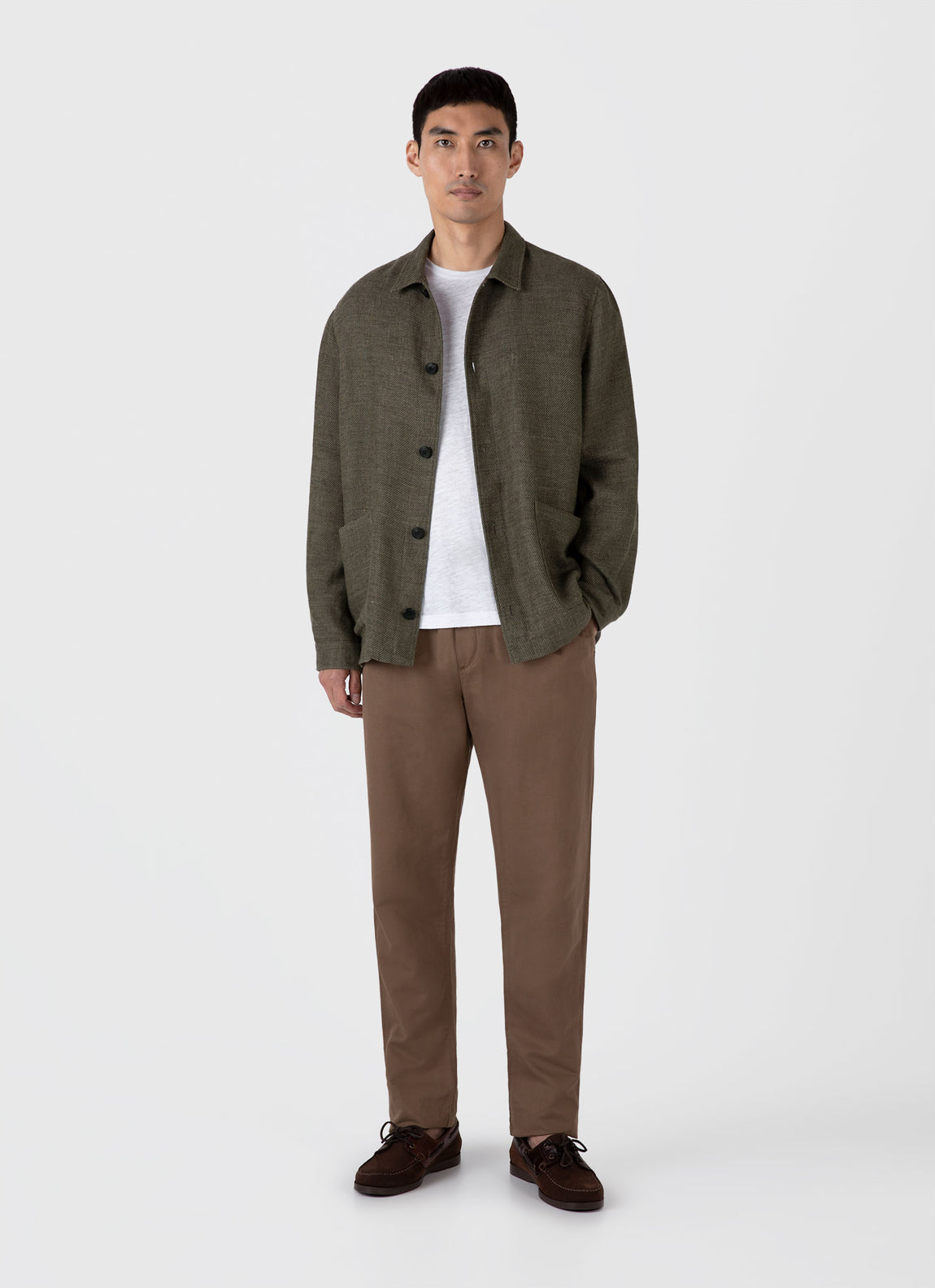 A refined summer T-shirt that combines the soft handle of Pima cotton with the casual look and breathability of linen. The cut and style follow our Riviera T-shirt, which was tailored for Daniel Craig’s James Bond, with a slim fit and bound neckline.