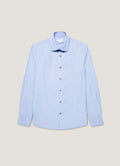 Perfect for work or formal occasions, this shirt is crafted from luxurious cotton poplin woven by a renowned Italian mill. A touch of stretch adds comfort and ease of movement, while the regular fit and smart collar create a clean, tailored look that transitions effortlessly from day to evening.