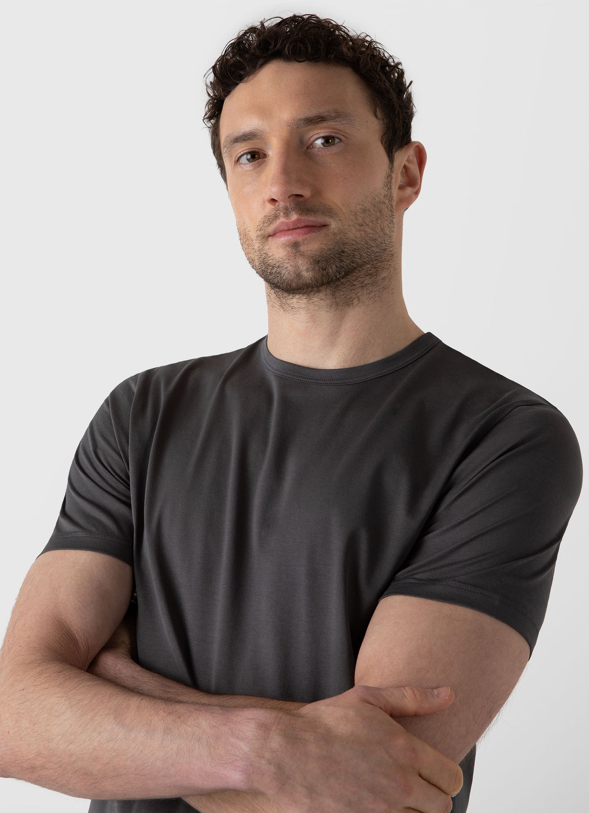 The fabric - a unique Sunspel development - is lightweight, durable and exceptionally smooth against the skin. With a slim fit, it is essential to every wardrobe. We believe it is the perfect T-shirt.