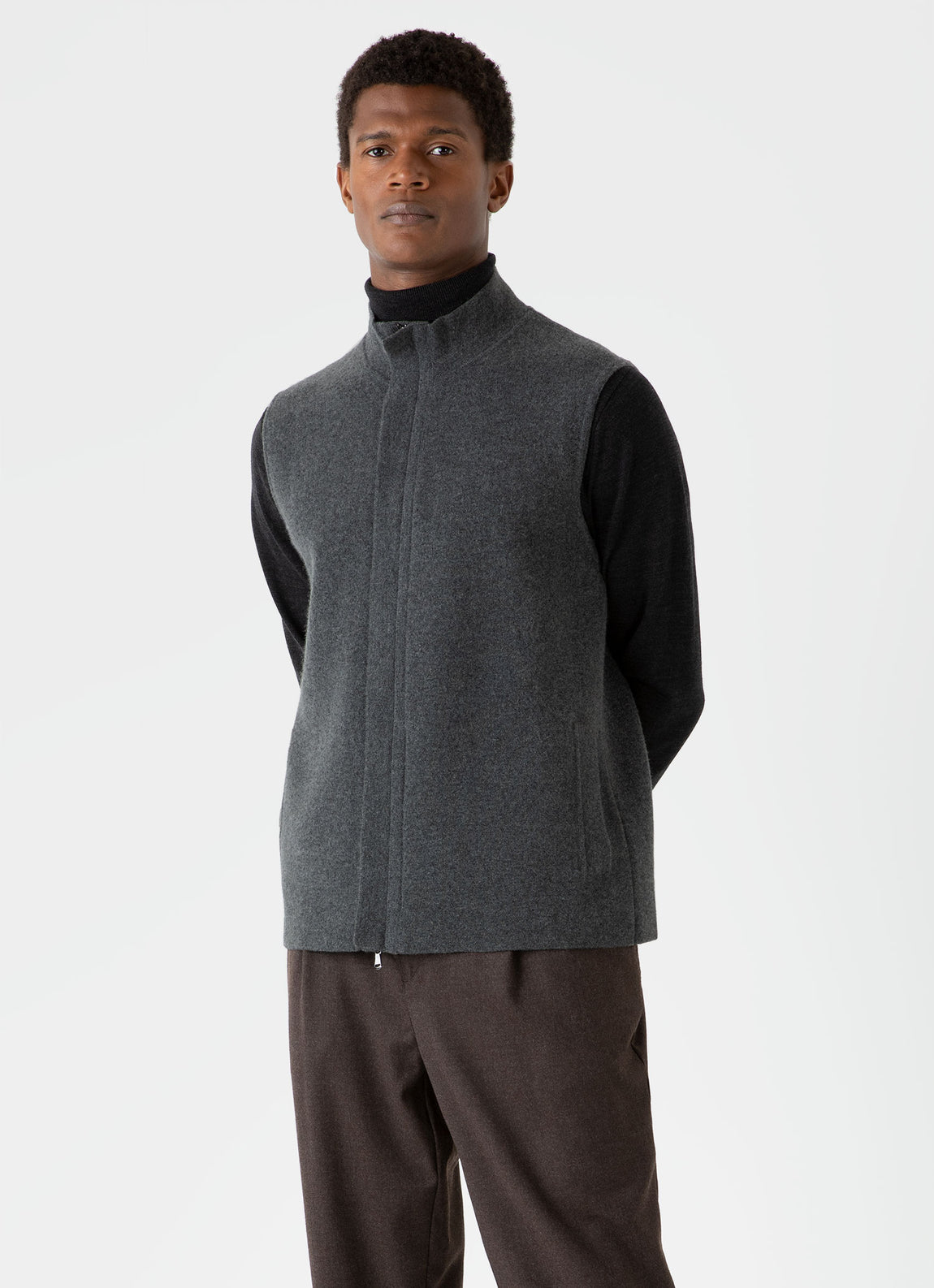 A versatile everyday gilet made with a double face knit combining soft Italian lambswool with Egyptian long staple cotton for a smooth, cool feel. Ideal for commuting, it features side welt pockets and a two way zip. Style over a merino polo shirt or under a winter coat.