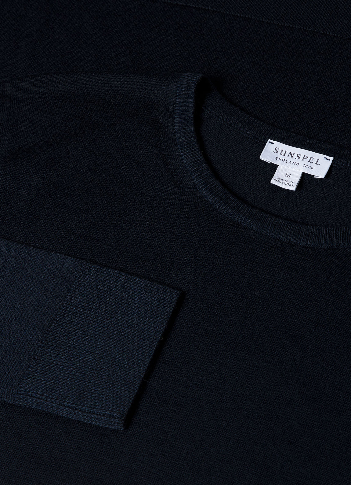 We source our merino from Piedmont in northern Italy, from a spinner established in 1817 that works only with ethically farmed, non-mulesed sheep. The yarn is knitted in Portugal on traditional Bentley frame machines originally from Loughborough, England. These heritage machines produce a compact, clean knit that is both refined and durable.