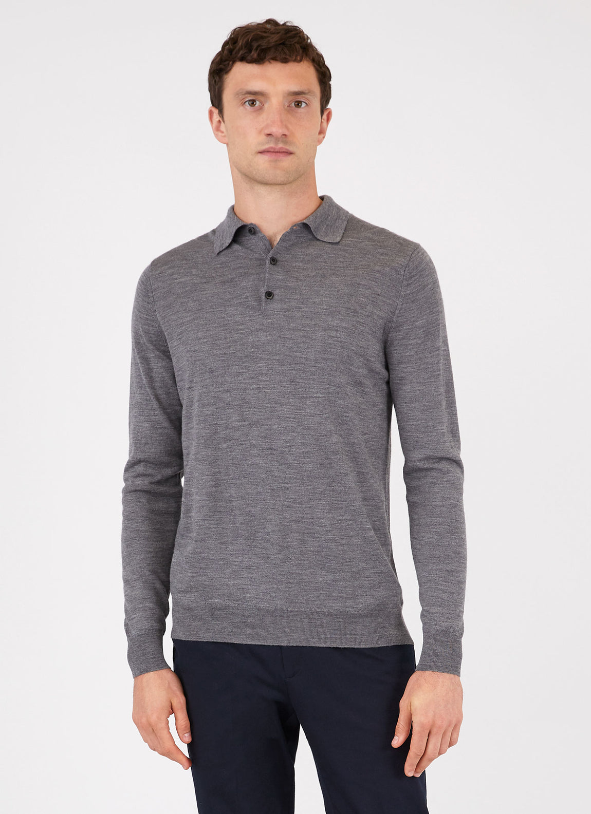 Inspired by the classic polo shirt, this refined piece is crafted from our Italian-spun extra-fine merino wool and knitted on traditional Bentley frame machines from Loughborough, England. Featuring a crisp collar, natural horn buttons, and ribbed hems and cuffs, it offers lightweight comfort and is ideal for year-round layering.