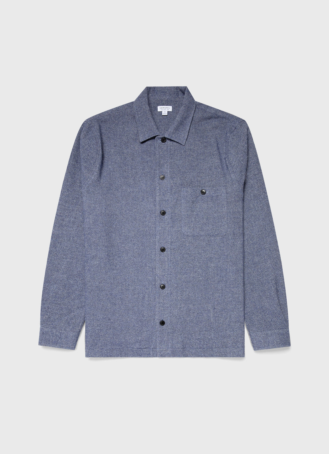 An elegant layer, this overshirt is warm and comfortable and is crafted from a soft Italian wool flannel. It has a relaxed fit with a chest pocket and horn buttons. An ideal transeasonal piece, it can be worn over a T-shirt or heavier knitwear.