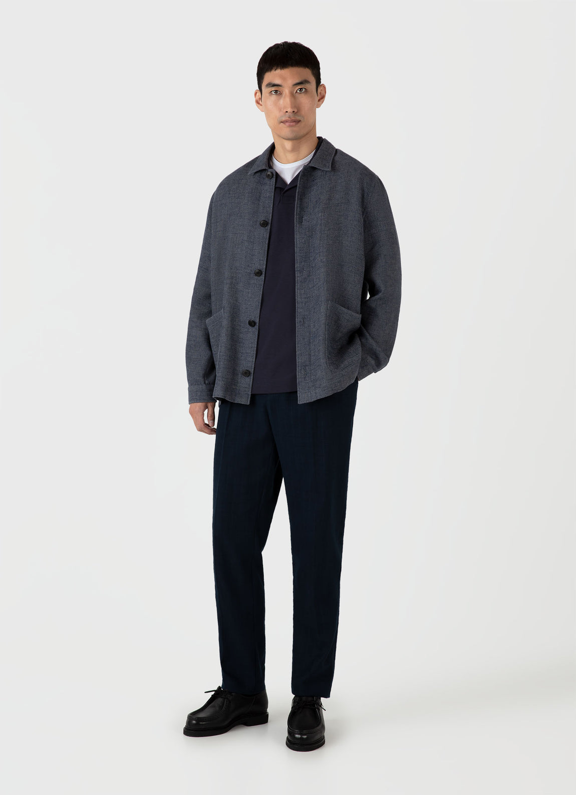 A heavyweight summer polo crafted in luxurious carbon-brushed Supima cotton. With a soft, smooth feel, it has a clean buttonless open placket, collar and side vents. Its relaxed fit gives it both a smart and contemporary feel, making it an ideal everyday piece.