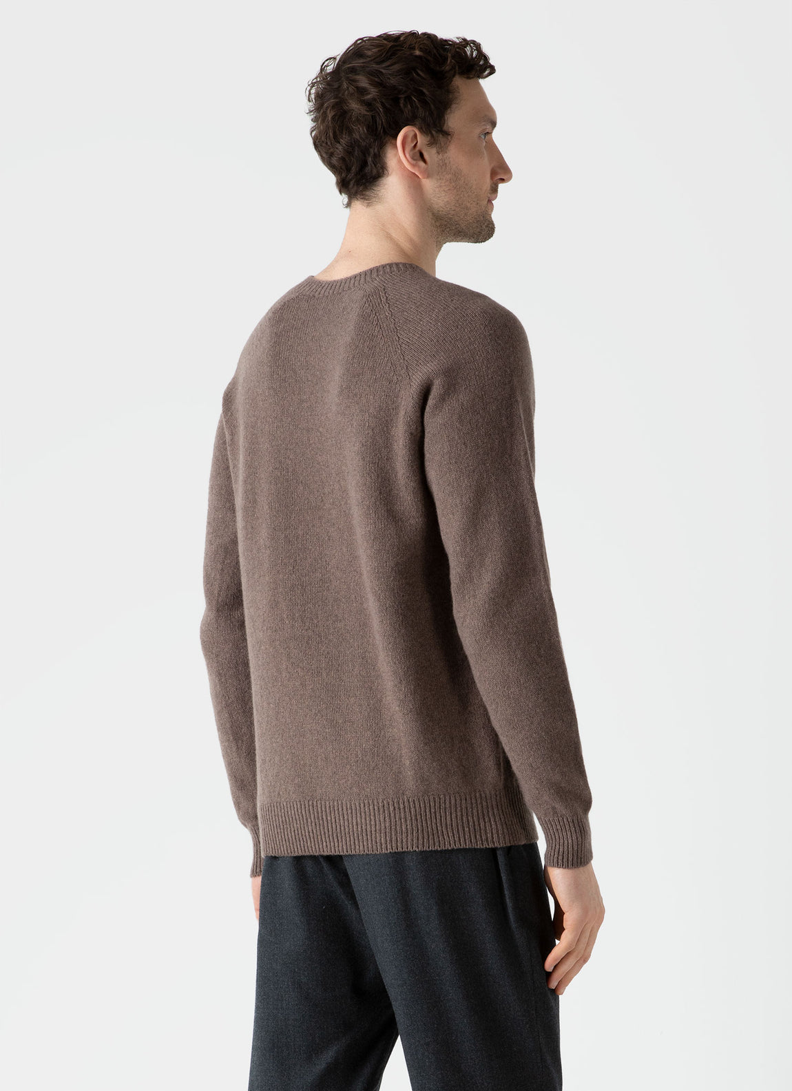 A classic lambswool jumper, knitted in Scotland using yarn from one of the world’s oldest spinners, based in Fife. Washed in pure Scottish spring water to naturally soften the fibres, it has a warm, breathable feel and a beautifully soft handle. A timeless piece that blends British heritage craftsmanship with everyday comfort.