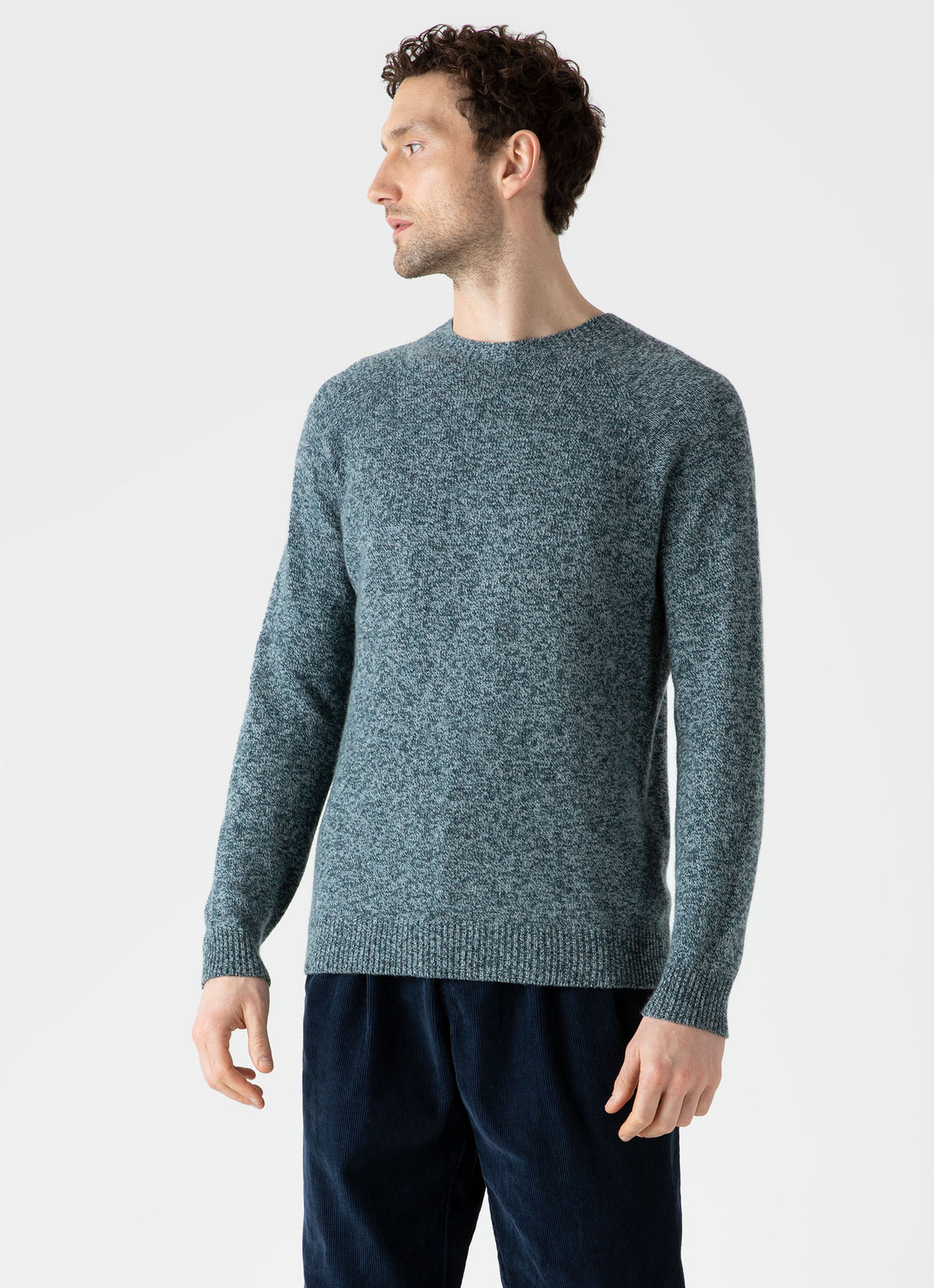 A classic lambswool jumper, knitted in Scotland using yarn from one of the world’s oldest spinners, based in Fife. Washed in pure Scottish spring water to naturally soften the fibres, it has a warm, breathable feel and a beautifully soft handle. A timeless piece that blends British heritage craftsmanship with everyday comfort.