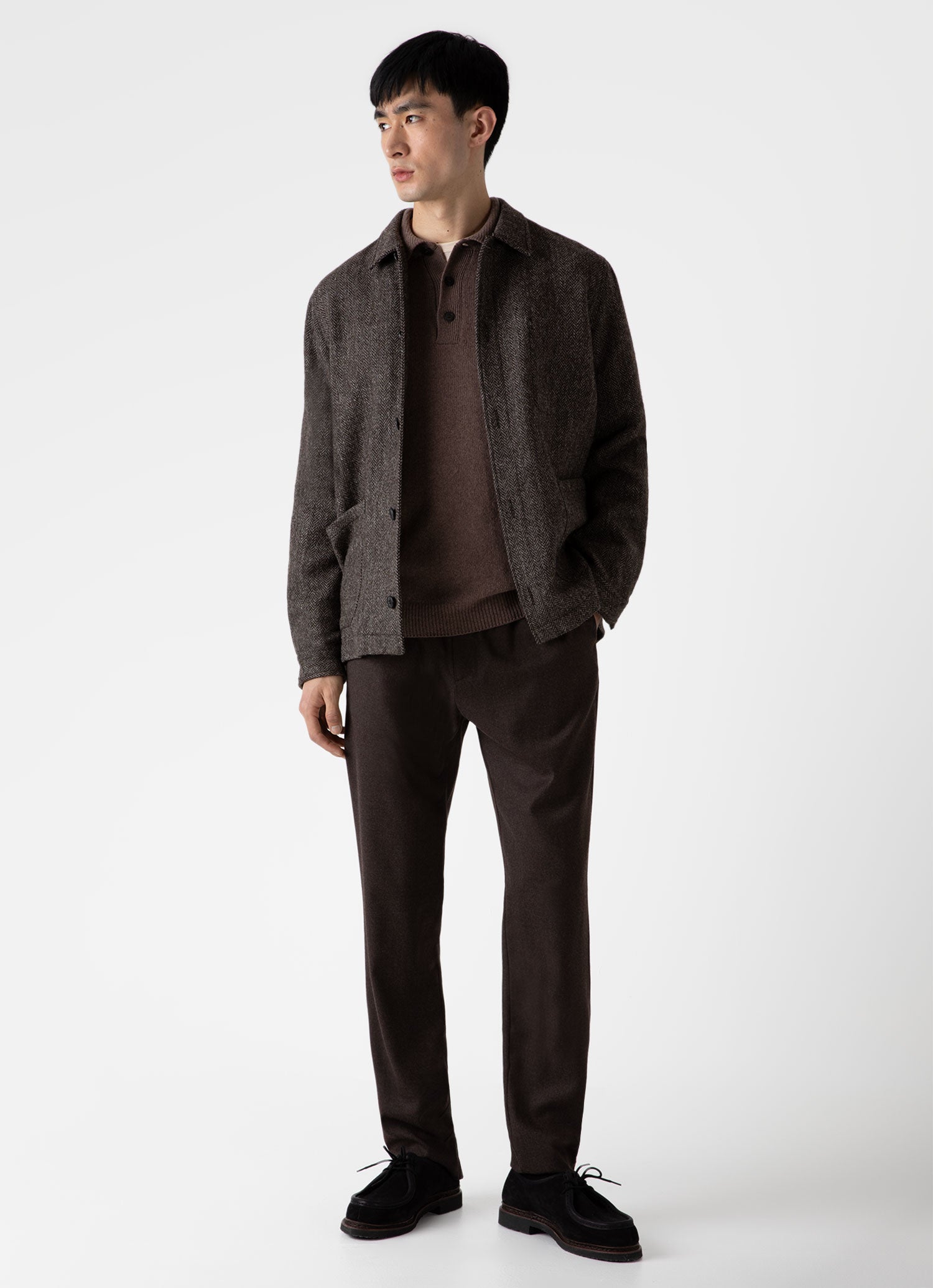 A luxurious, contemporary take on the classic polo shirt, made for the colder months and knitted in Scotland using the finest lambswool yarn from one of the world’s oldest spinners, based in Fife. Washed in pure Scottish spring water to naturally soften the fibres, it has a warm, breathable feel and a beautifully soft handle. A timeless piece that blends British heritage craftsmanship with everyday comfort.