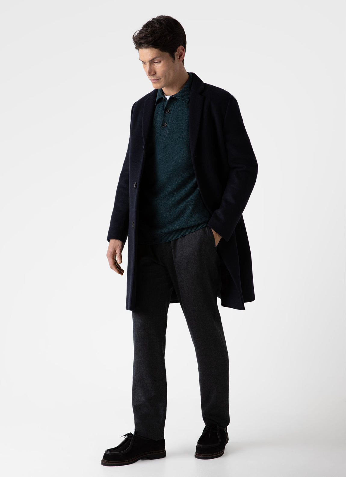 A luxurious, contemporary take on the classic polo shirt, made for the colder months and knitted in Scotland using the finest lambswool yarn from one of the world’s oldest spinners, based in Fife. Washed in pure Scottish spring water to naturally soften the fibres, it has a warm, breathable feel and a beautifully soft handle. A timeless piece that blends British heritage craftsmanship with everyday comfort.