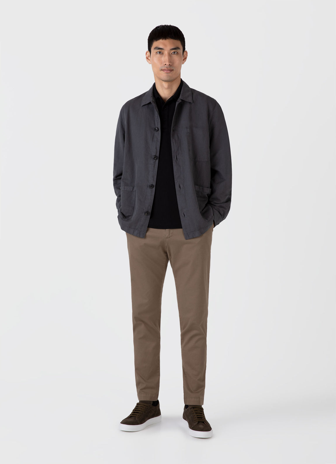 A long sleeve polo, made with a cotton waffle fabric specially developed for a soft handle. Crafted from a fully traceable extra-long staple Supima cotton for a smooth finish and extra durability. Features a one piece collar with a wide placket, and a ribbed hem and cuff.