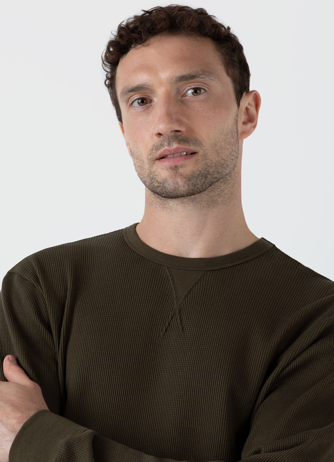 A lightweight, long sleeve T-shirt, made with a cotton waffle fabric, specially developed for a soft handle. Crafted from extra-long staple Supima cotton which is sustainably grown and traceable to a single Californian farm. Features sweatshirt detailing, and a ribbed hem and cuff. Pairs perfectly with jeans and a jacket.