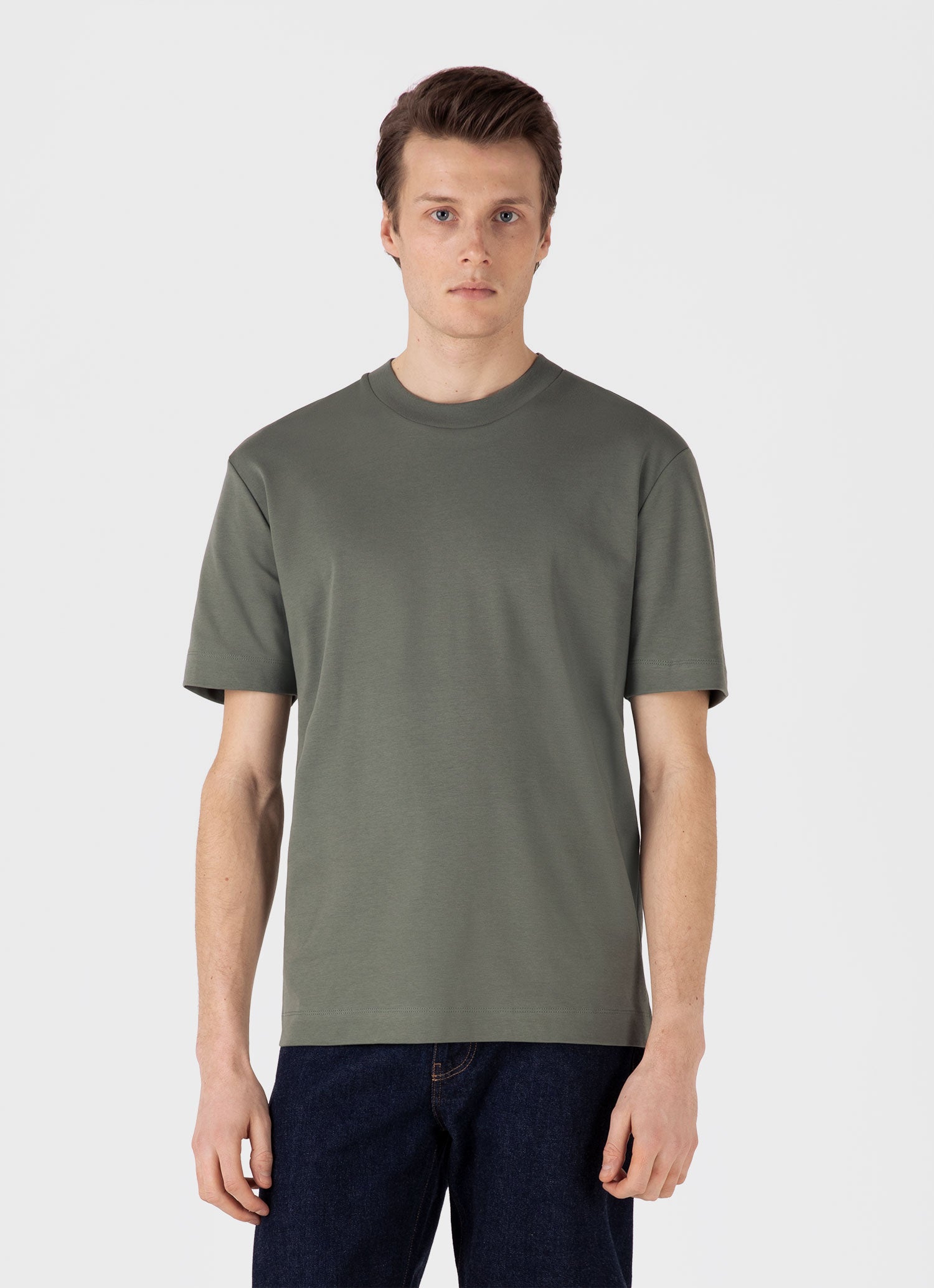 A heavyweight T-shirt made with the highest quality Californian, extra-long staple Supima cotton that’s been carbon-brushed for an extra soft handle. With a relaxed fit and a contemporary wide-trim crew neckline, it's the ultimate layering piece.