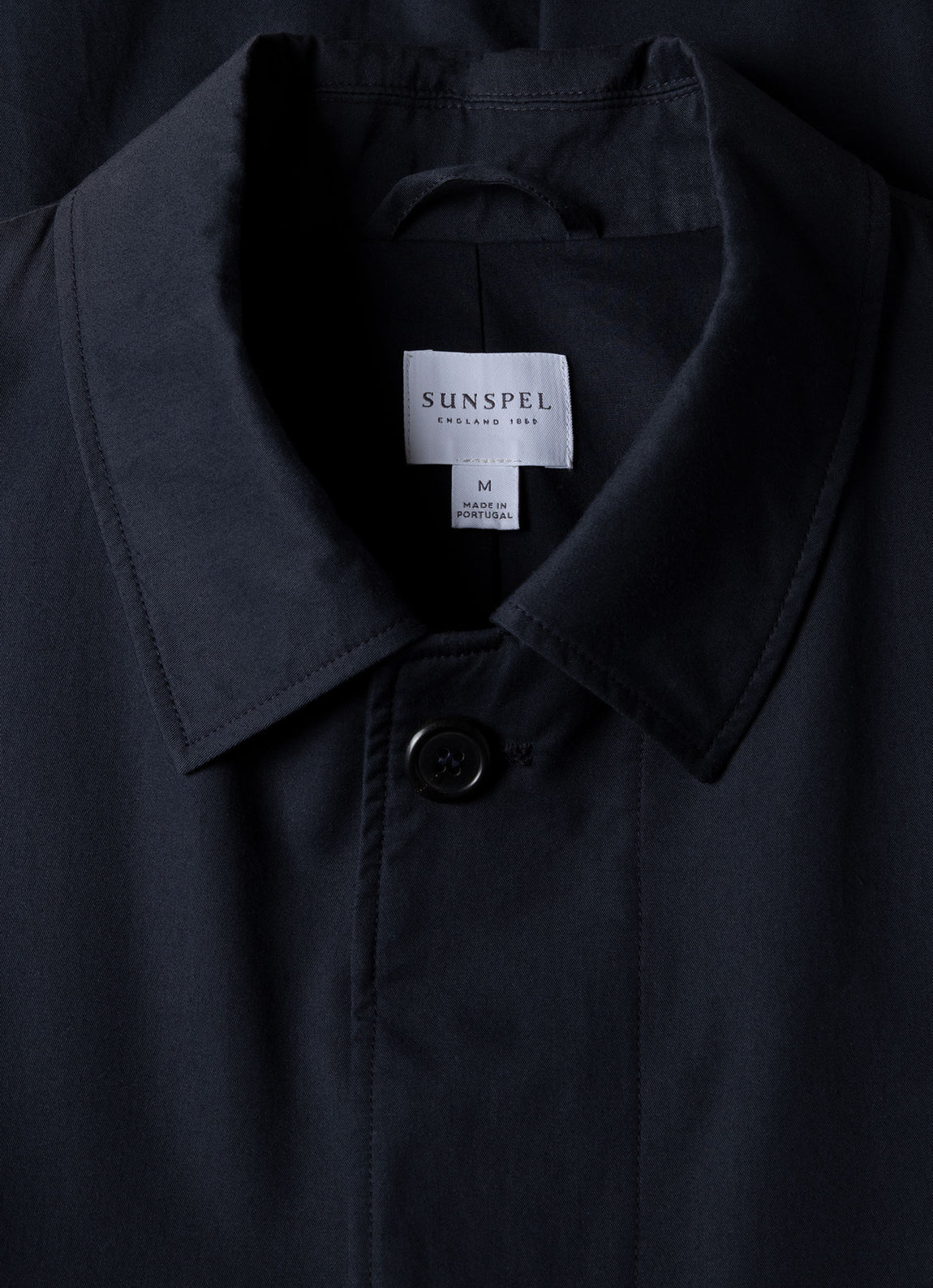A smart and functional mac constructed from showerproof cotton with a technical finish, and fully lined so it can be worn all year round. Storm flap fastening, hidden button fly and modern welt pockets.