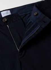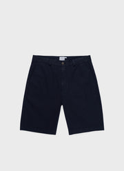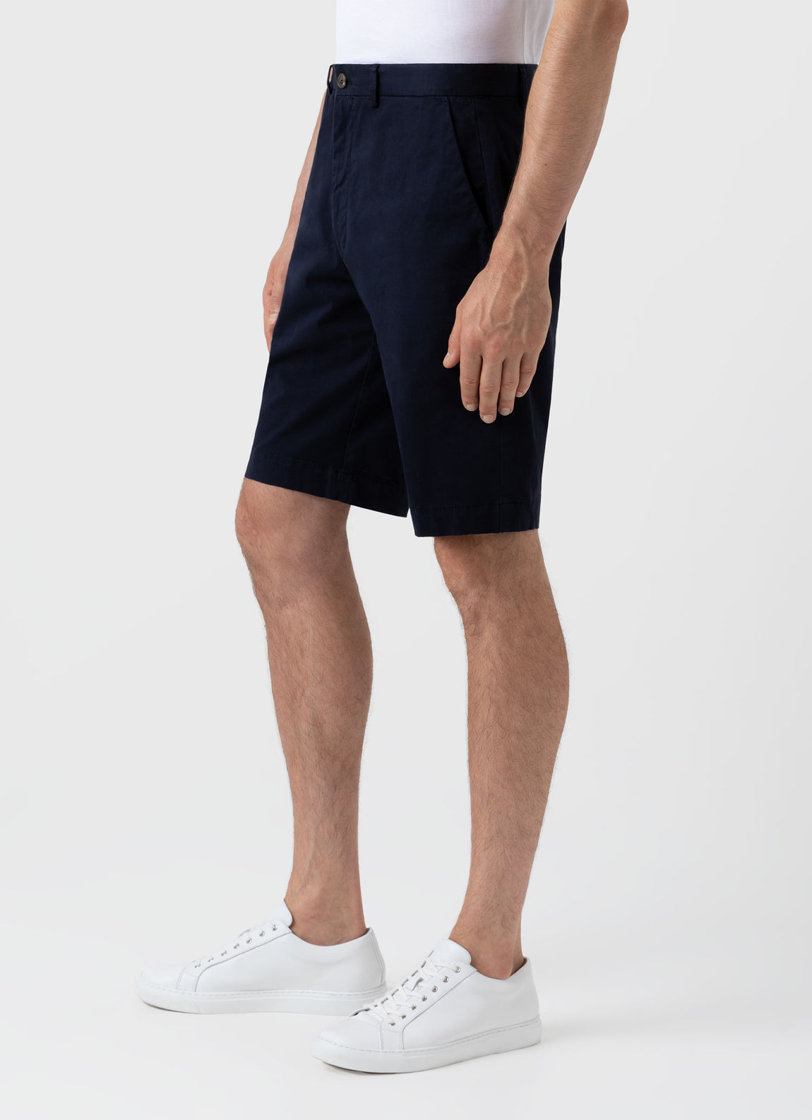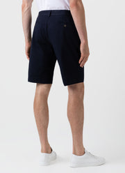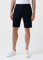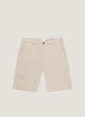 With a comfortable lightweight stretch cotton twill, the chino short is cut to a mid-rise, and has been garment dyed for a soft, comfortable feel. Horn button closure zip fly, slanted topstitch front pockets and single welt back pockets with horn buttons.