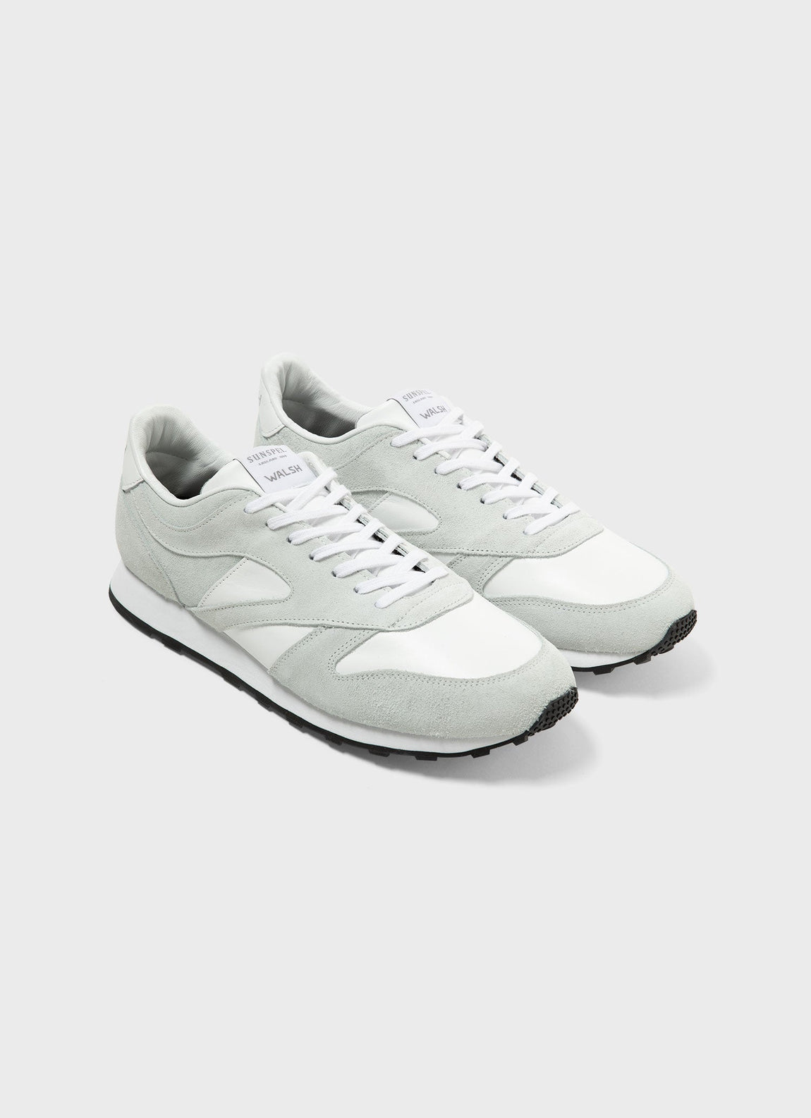 Heritage English footwear brand Walsh Sneakers has been making running shoes at its Bolton factory since 1961. We have reworked one of their most iconic styles in soft suede with leather detailing for a smart take on a technical running shoe, made here in England.