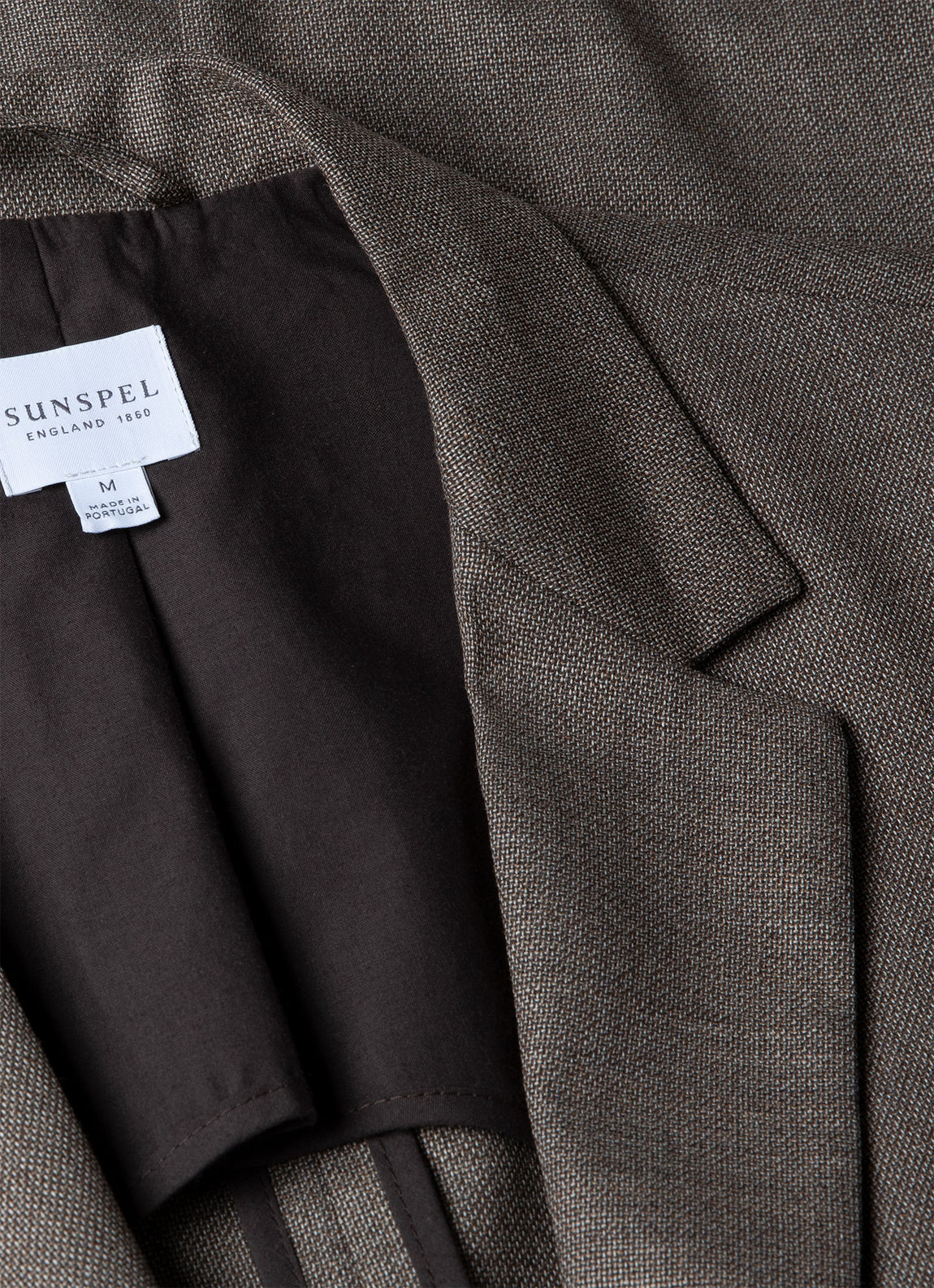 A light Panama textured blazer crafted in a luxuriously soft, Italian-made wool that doesn't crease. It's unstructured giving it a contemporary feel and it has refined detailing, bluff pockets and a half buggy lining. Pair with the matching trouser which is also creaseless to complete an ideal suit for work or formal occasions.