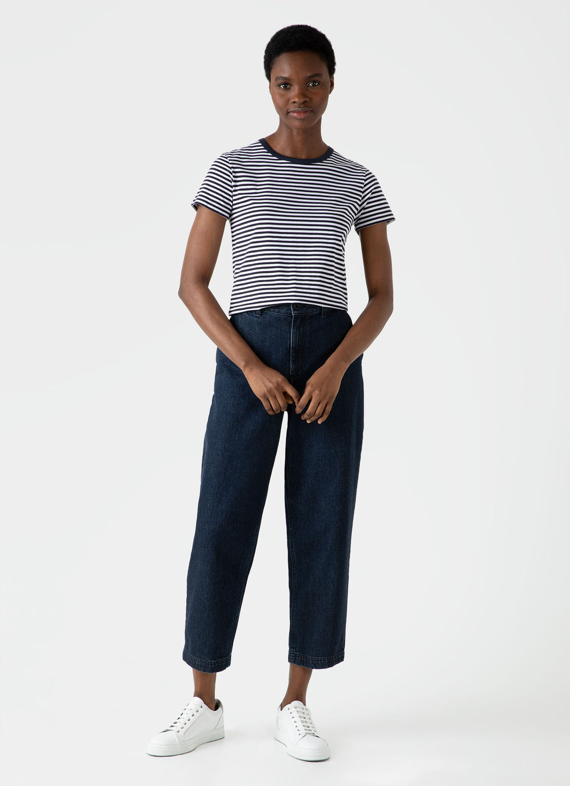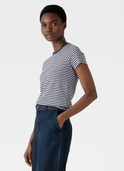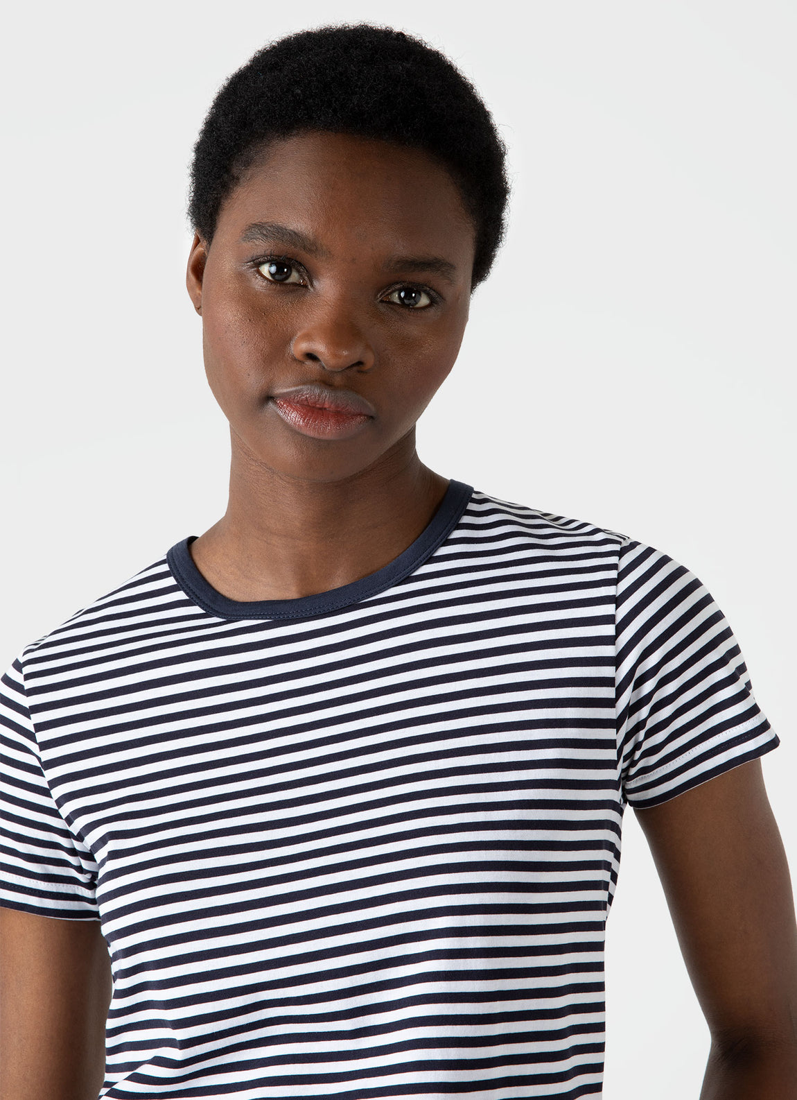 Our Classic T-shirt is handmade in the Sunspel factory in Long Eaton, England, using the finest, extra-long staple Supima cotton that can be traced to its Californian farm of origin. It has an easy, feminine feel, with perfectly proportioned sleeves, a clean, body-skimming fit and a crew neckline. It’s cut to sit just above the waist for ease of movement. This versatile long-lasting piece will be the foundation of your everyday wardrobe for many years to come.