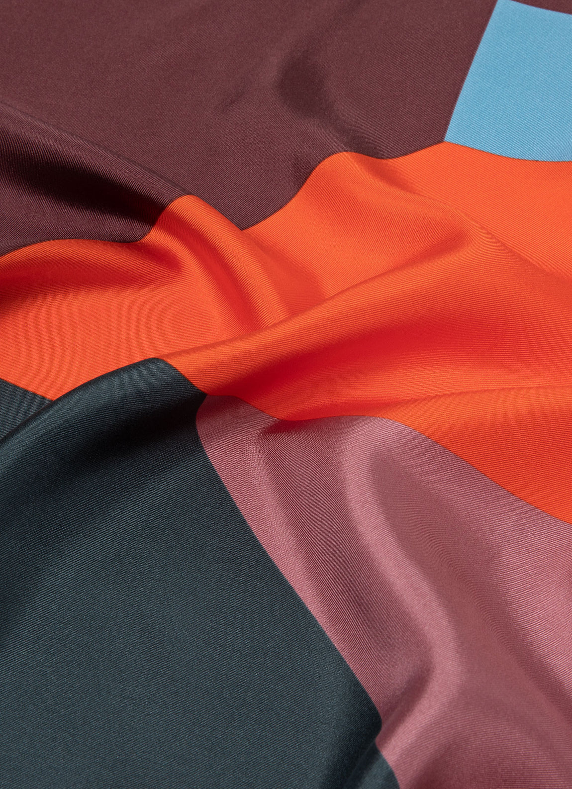 Made in the UK, this silk scarf features a painting by the British artist Anna Mac whose work explores conversations between colours. Beautifully soft, it is finished with hand-rolled edges for additional comfort.