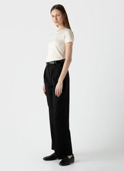The Sunspel Classic T-shirt is handcrafted in our Long Eaton factory. It’s made with our signature jersey fabric which is exceptionally soft and smooth against the skin and we can trace the Supima cotton to the Californian farm of origin. It has an easy, feminine feel, with perfectly proportioned sleeves, a clean, body-skimming fit and a crew neckline. It’s cut to sit just above the waist for ease of movement. This versatile long-lasting piece will be the foundation of your everyday wardrobe for many years to come.e length is cut to sit just over your waistband, allowing total freedom of movement.
