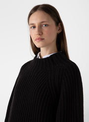 A chunky knit lambswool funnel neck jumper crafted from the finest Scottish lambswool. Washed in natural spring water for a luxuriously soft handle, it has boxy, oversized fit with a cropped body and a wide clean cuff. Pair with a pleated flannel trouser for a smart yet relaxed look.
