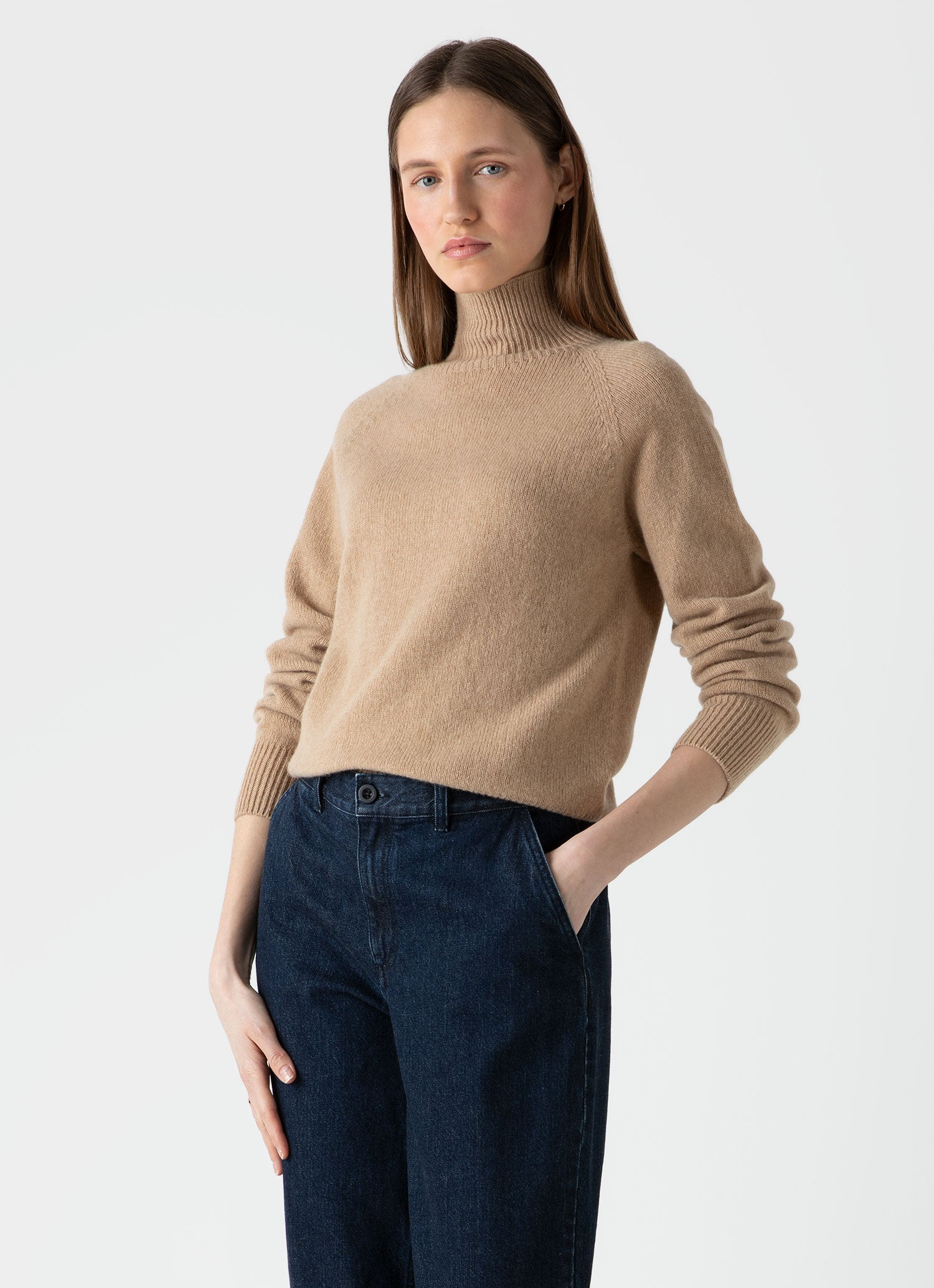 A soft lambswool funnel neck jumper, expertly knitted in Scotland using yarn from one of the world’s oldest spinners. Each piece is washed in pure Scottish spring water to enhance the natural softness of the fibres. With its clean funnel neck and raglan sleeves, this is an effortlessly refined winter classic.