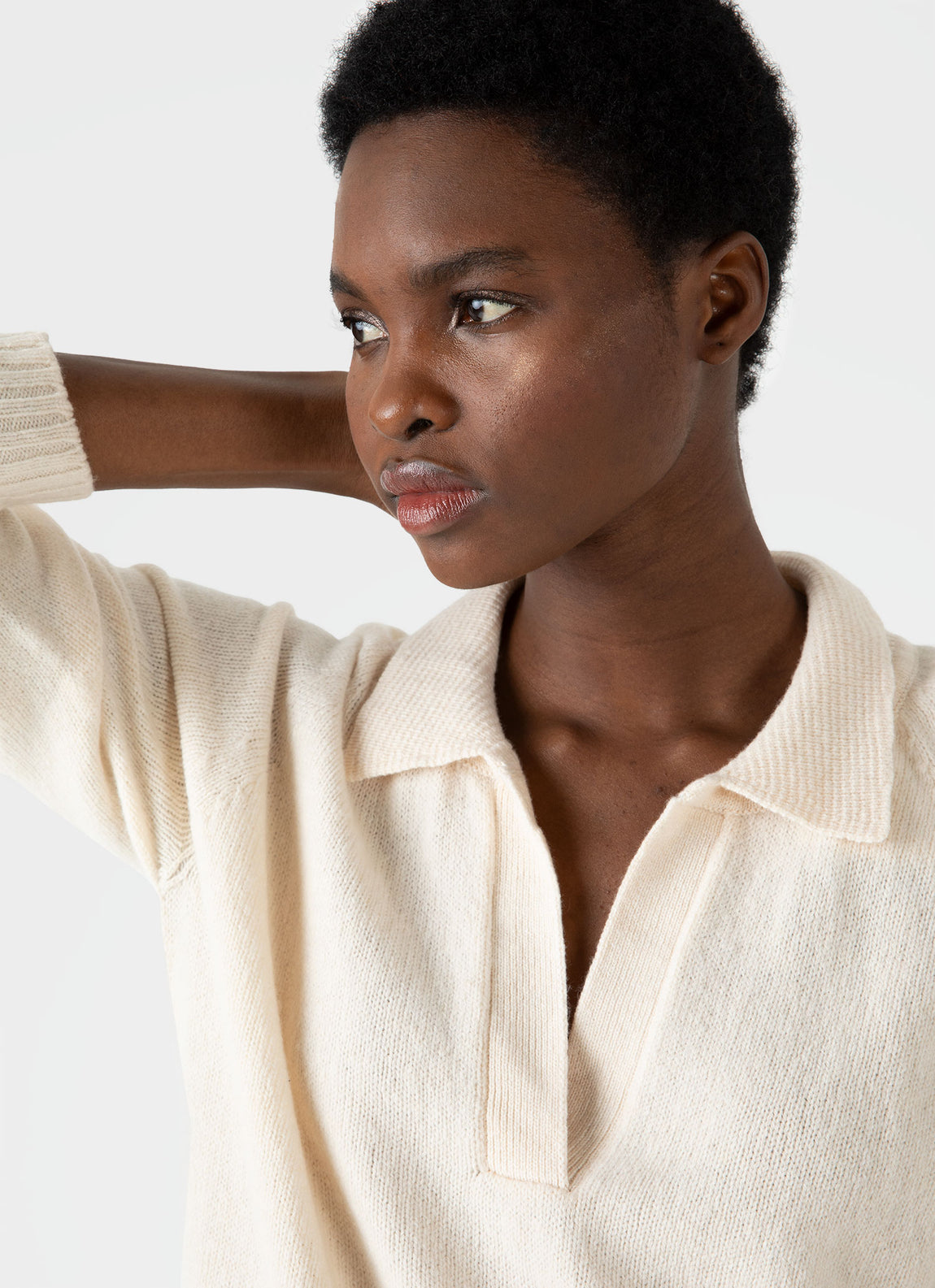 A luxuriously soft Lambswool Polo Jumper made in Scotland. Crafted from the finest super-geelong lambswool and washed in natural spring water for an extra-soft handle. With a wide placket and deep neckline, it has an easy fit and effortless feel. Warm and comfortable, it is a perfect everyday winter layer.
