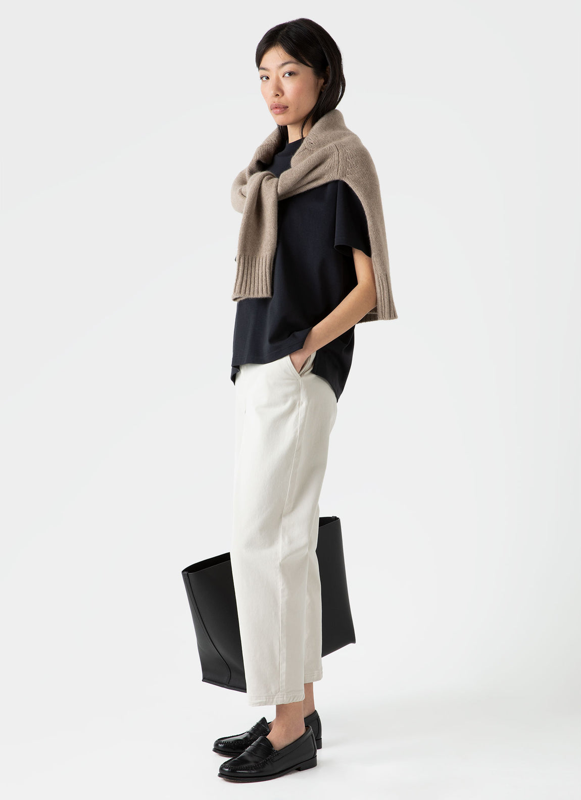 An essential everyday Mock Neck T-shirt, crafted from exceptionally soft carbon brushed cotton. With a heavier weight fabric and relaxed body fit, it is a perfect transeasonal layer. Wear with cords for a versatile, relaxed look.