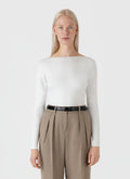 An elegant top made in an Italian spun viscose blend with a smooth, compact stitch that gives it a super-soft feel. Our viscose is crafted in a resource-saving production process that requires 50% less water and produces 50% of the carbon footprint of regular viscose. With a contemporary close-fitting silhouette, it has a feminine slash neckline and minimal detailing. A perfect smart evening layer, it can be styled down easily for casual settings too.